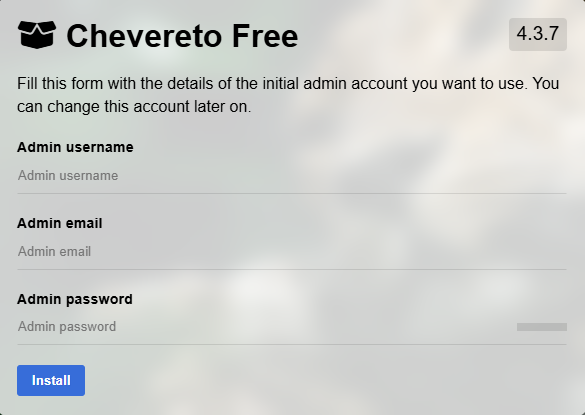 If you followed our instruction, this will be the info you will be putting in your Chevereto installation