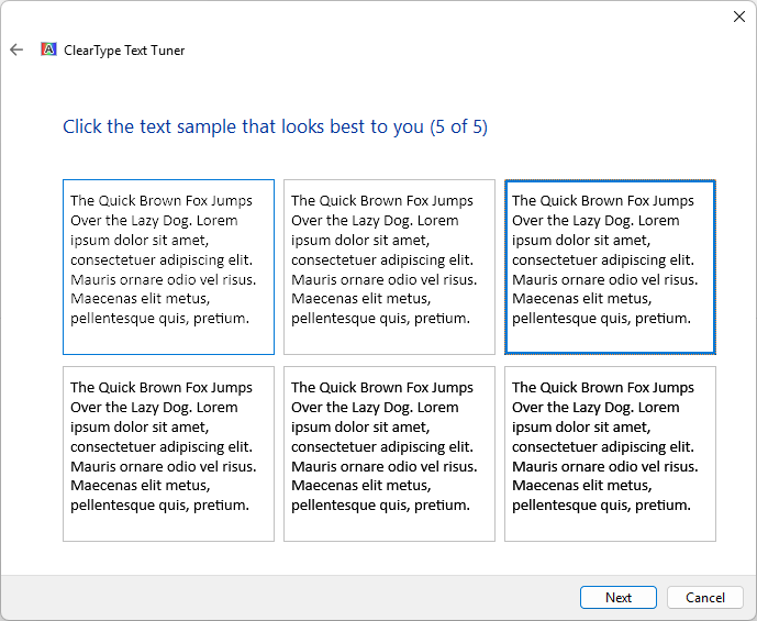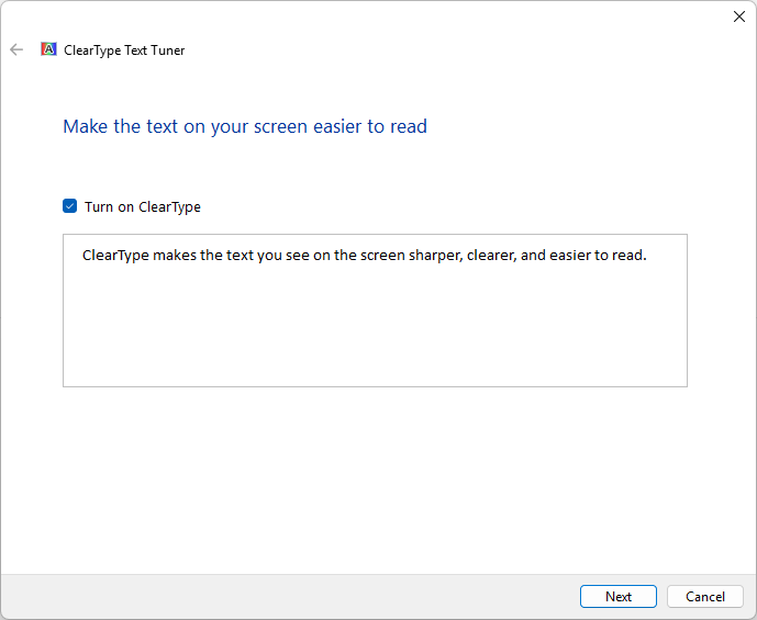 - Ensure Turn on ClearType is checked, then click Next.