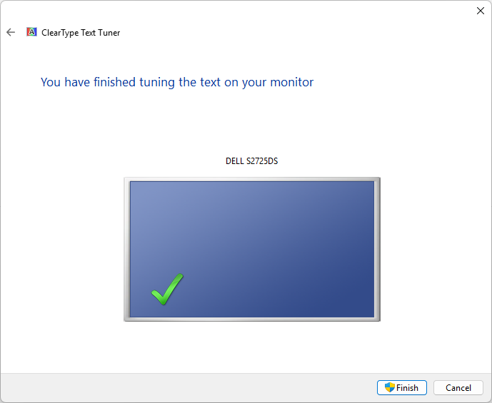- Click Finish to apply your chosen ClearType settings.