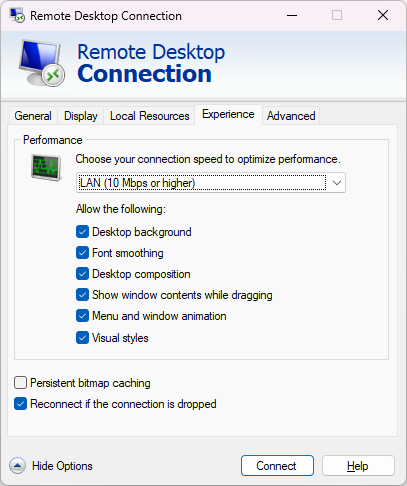 This fine-tunes how Windows renders text, resulting in smoother and easier-to-read fonts when using RDP.