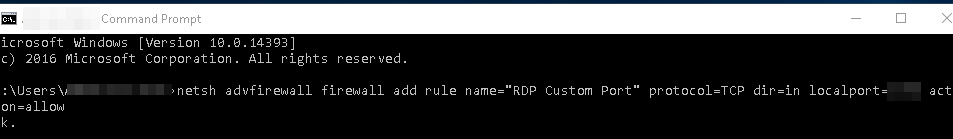 netsh advfirewall firewall add rule name="RDP Custom Port" protocol=TCP dir=in localport=3390 action=allow