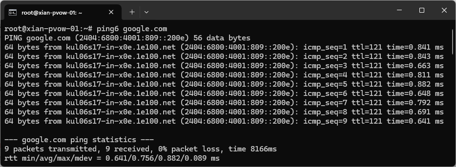 ping -6 google.com