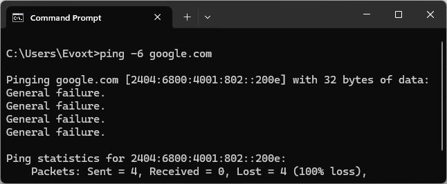 If this fails, your device may not have IPv6 internet access.