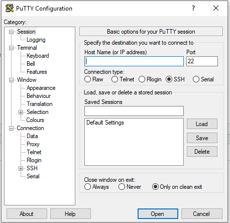 To connect through PuTTy, simply key in your VM IP, Default Port (22) and click Open