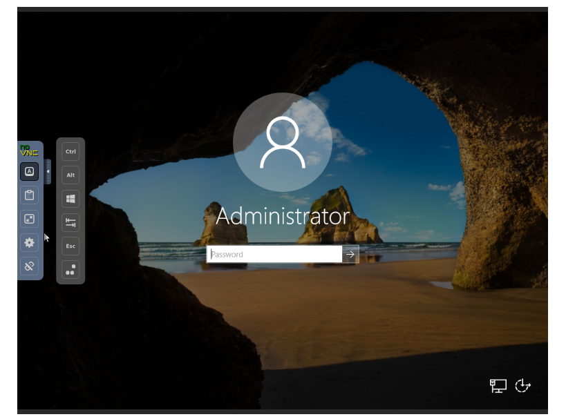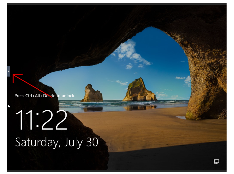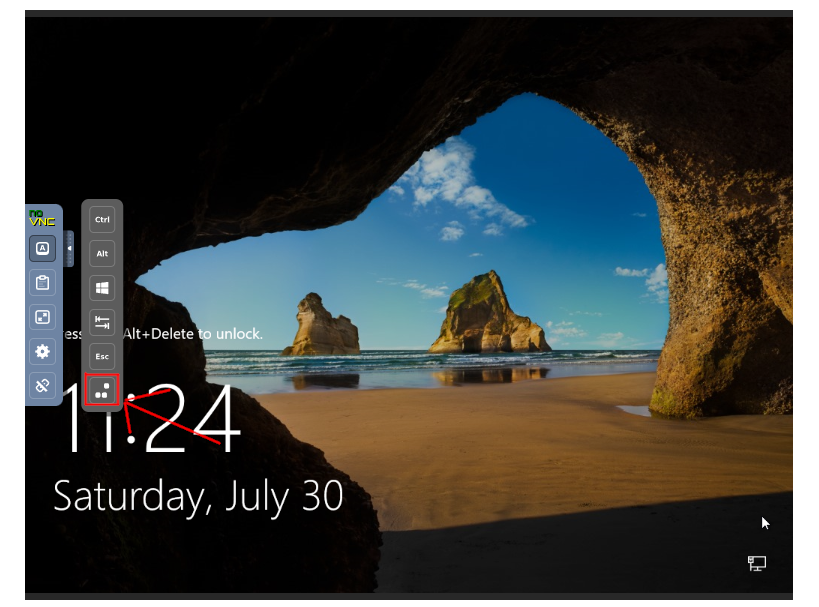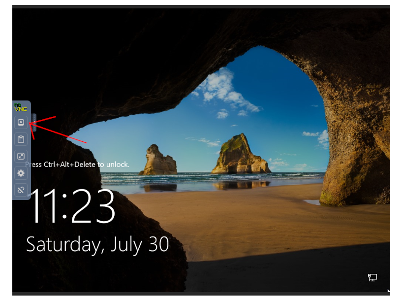 To login to your Windows server, click on the left tab and click on the expand button to input Control + Alt + Del to the login screen.