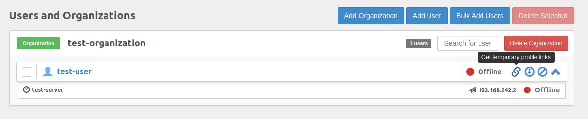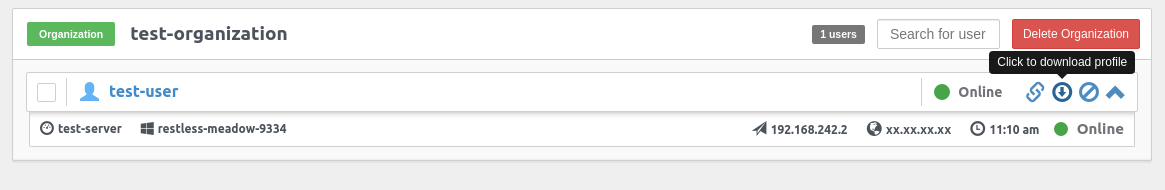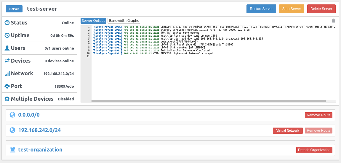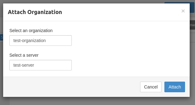 Once the server is created, click Attach Organization to add the organization and users to this server.