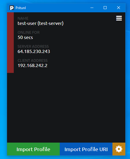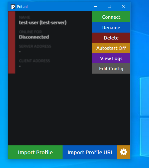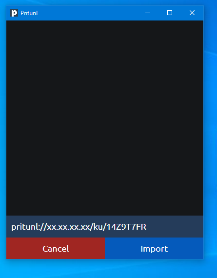 Copy the Temporary uri link for Pritunl Client and paste it in your Pritunl Client by clicking Import Profile URI.