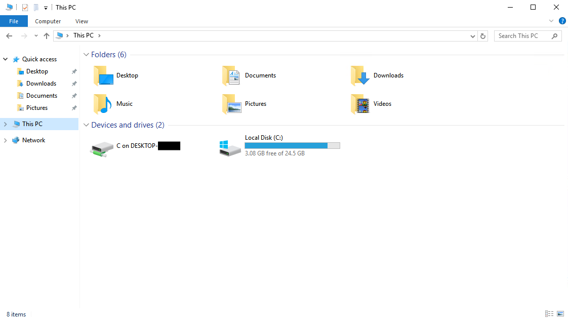 - Connect. In the VPS File Explorer, the drives appear as, for example, C on YOUR-PC-NAME.